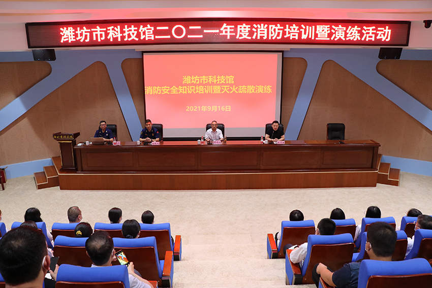 為保證濰坊市文化藝術(shù)中心各場館安全有效運行,扎實打牢濰坊市文化藝術(shù)服務(wù)中心安全基礎(chǔ),提高各入駐單位、商鋪人人了解消防安全常識,加強各單位人員火災(zāi)防范和應(yīng)急處置能力,濰坊市科技館與濰坊市消防救援支隊及高新區(qū)消防救援大隊在濰坊市科技館聯(lián)合舉行了一次安全技能培訓(xùn)及消防疏散演習。市科技館、昌大公管共計46人參加了消防演習。